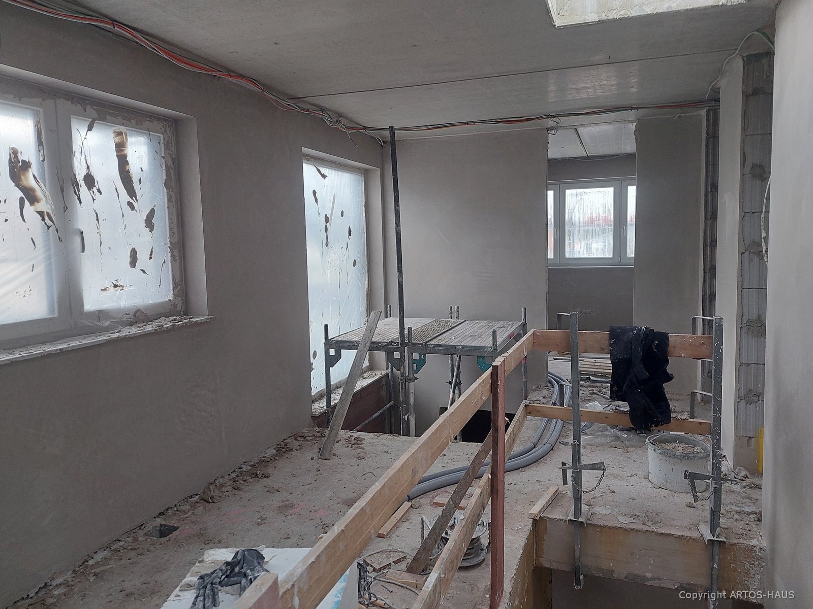Die Rohbauarbeiten sind fast fertiggestellt (Ausschalen der Deckenbereiche) ← Innenbereich. Die Baustelle wurde geräumt, damit u.a. die Innenarbeiten starten können.