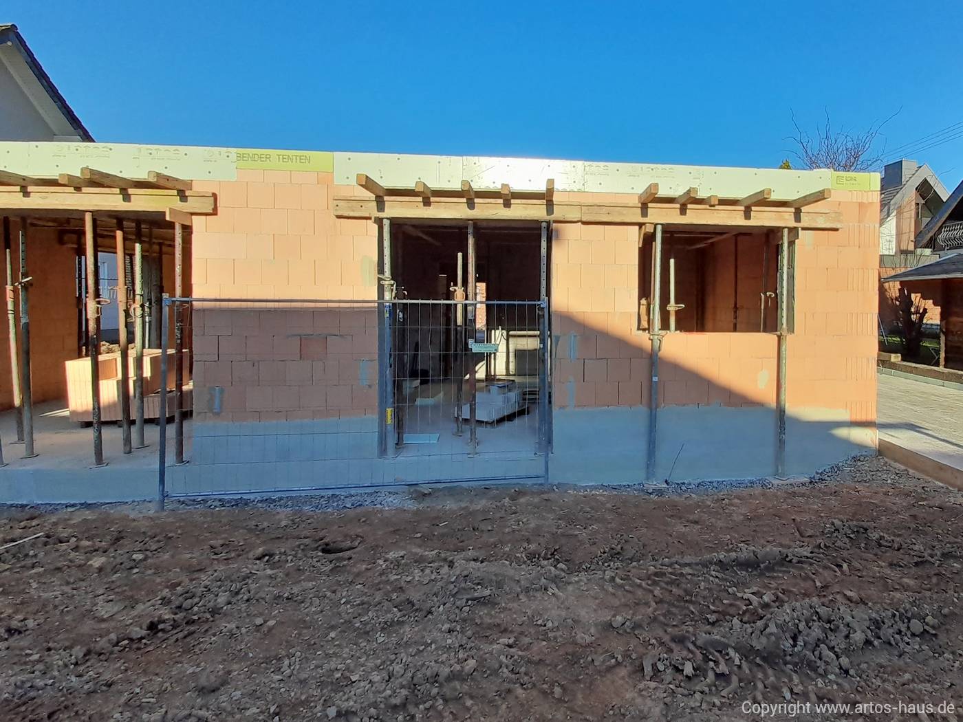 In Troisdorf entsteht seit Mitte Februar 2022 ein nach Bauherrenwünschen individuell geplantes Einfamilienhaus als Bungalow mit Garage (Baukörper: ca. 11 x 11,70 m) mit ca. 114 m² Wohnfäche. Auch die Garage (mit Zugang direkt im Haus) wird von uns in Massivbauweise errichtet.