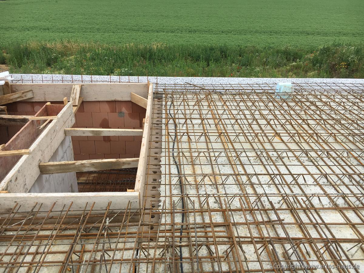 Auf unserer Baustelle in Dormagen wurde das EG fertig gemauert, danach die Bewehrung für die EG Decke eingebaut. Innen wurde die massive Treppe zum OG zur Betonierung geschalt.