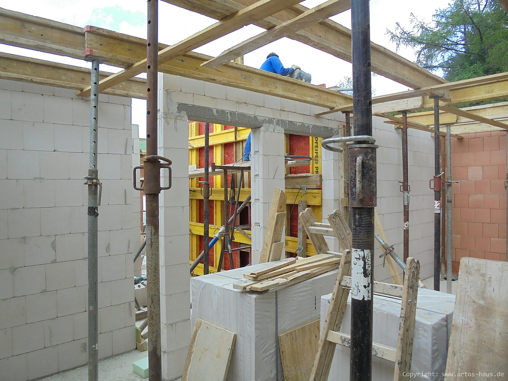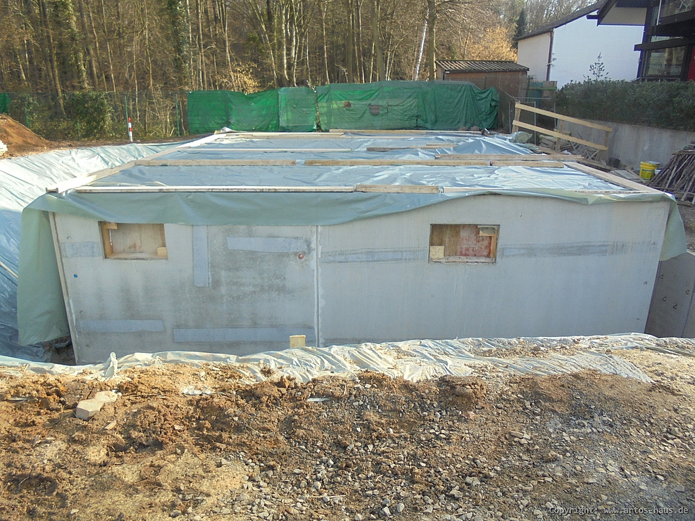 Zum einen gab es bereits zu Beginn der Baumaßnahme Schwierigkeiten mit dem Baugrund, so das zusätzlich Sicherungsmaßnahmen im Böschungsbereich ergriffen werden mussten, zum anderen wurde das Gebäude aber auch während der Bauphase noch einmal umgeplant und um ein Staffelgeschoss erweitert. Hierzu musste natürlich auch die Statik neu aufgestellt und ein Nachtrag zum Bauantrag gestellt werden, was letztlich zu der längeren Bauzeit beigetragen hat. Aber auch die Eigenleistungen der Bauherren haben hier etwas länger gedauert als gedacht und so sind vom ersten Spatenstich bis zum Einzug dann doch 14 Monate ins Land gegangen. Die reine Bauzeit liegt hier allerdings bei 10 Monaten (inklusive Keller und Staffelgeschoss).