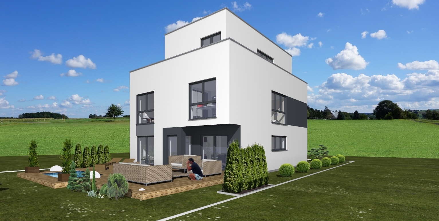 Bei diesem Ende Februar 2018 gestarteten Bauvorhaben handelt es sich um ein nach Bauherrenwünschen individuell geplantes und massiv gebautes Architektenhaus im Bauhaus-Stil als Niedrigenergiehaus nach EnEV 2016.